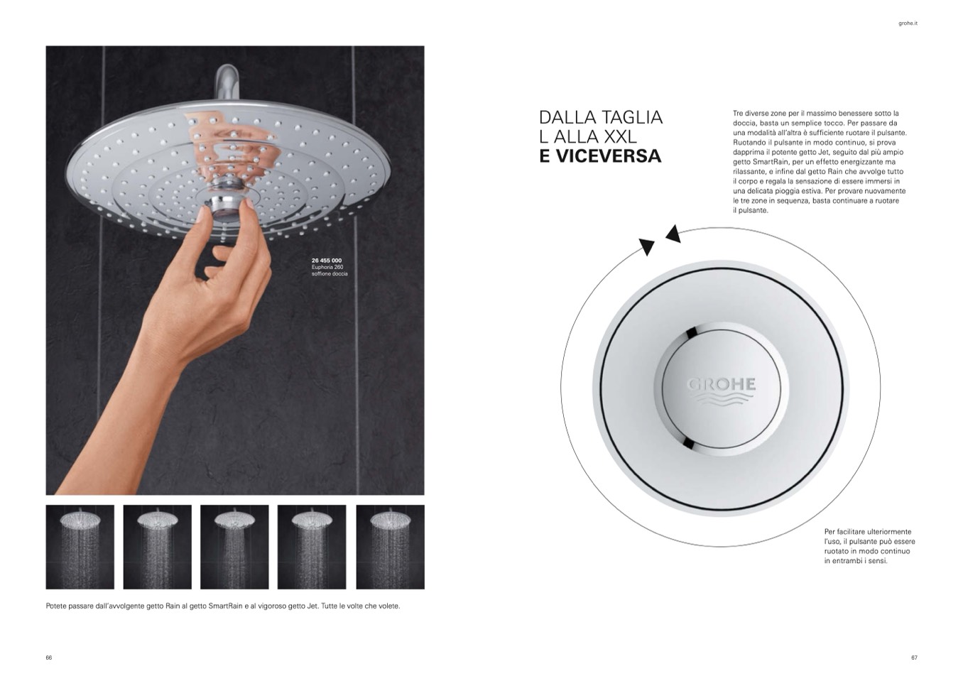 Potete passare dall’avvolgente getto Rain al getto SmartRain e al vigoroso getto Jet. Tutte le volte che volete.