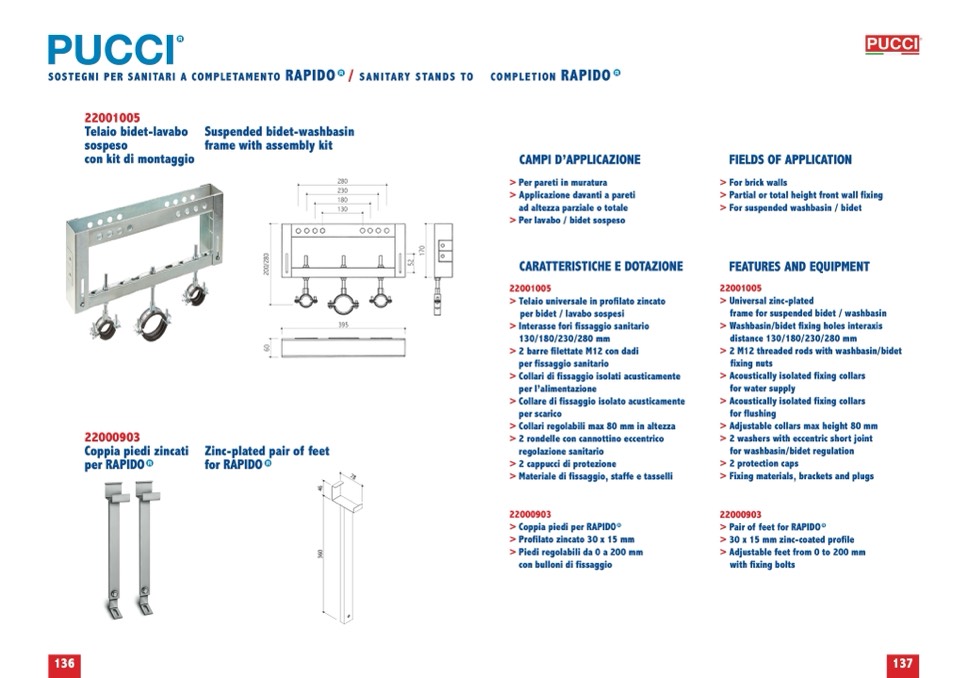 per bidet / lavabo sospesi