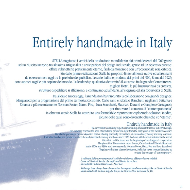 Stella taps have always been chosen when luxuryand sturdiness are key. Like on Conte di Savoia
