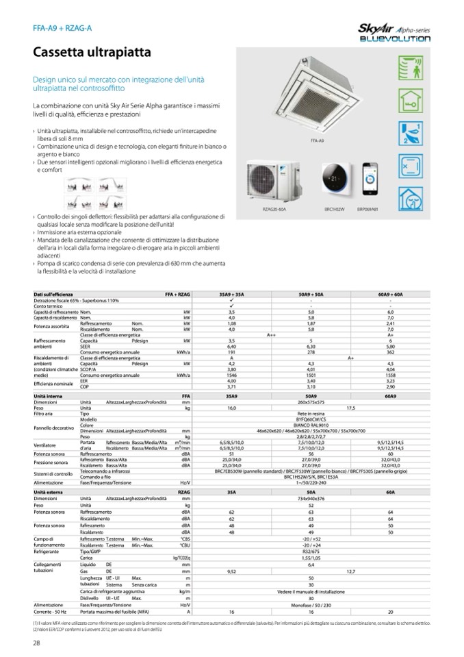 › Unità ultrapiatta, installabile nel controsoffitto, richiede un'intercapedine