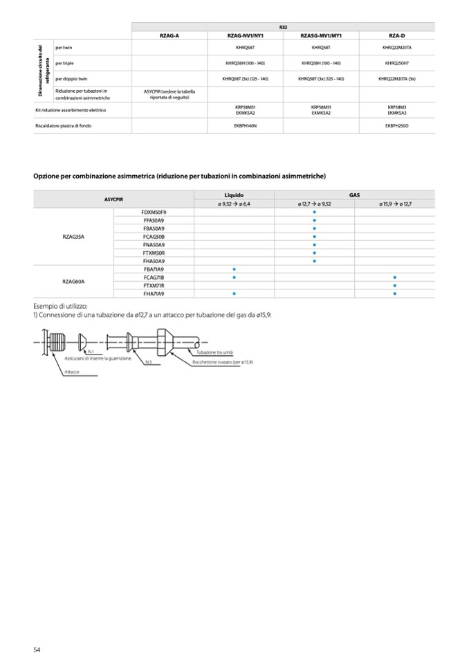 1) Connessione di una tubazione da ø12,7 a un attacco per tubazione del gas da ø15,9: