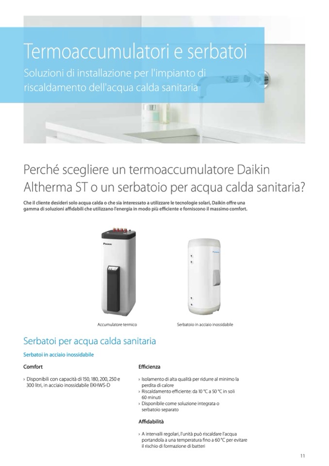 Che il cliente desideri solo acqua calda o che sia interessato a utilizzare le tecnologie solari, Daikin offre una