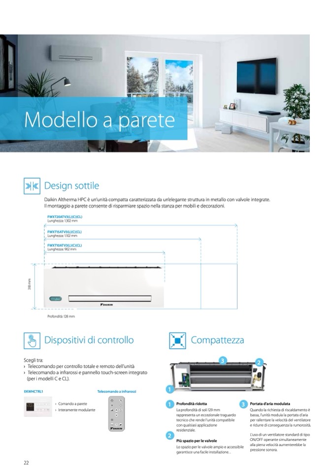 › Telecomando a infrarossi e pannello touch-screen integrato