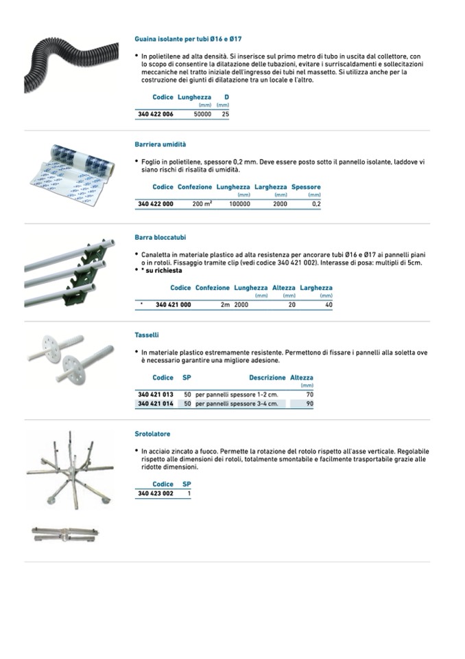 o in rotoli. Fissaggio tramite clip (vedi codice 340 421 002). Interasse di posa: multipli di 5cm.