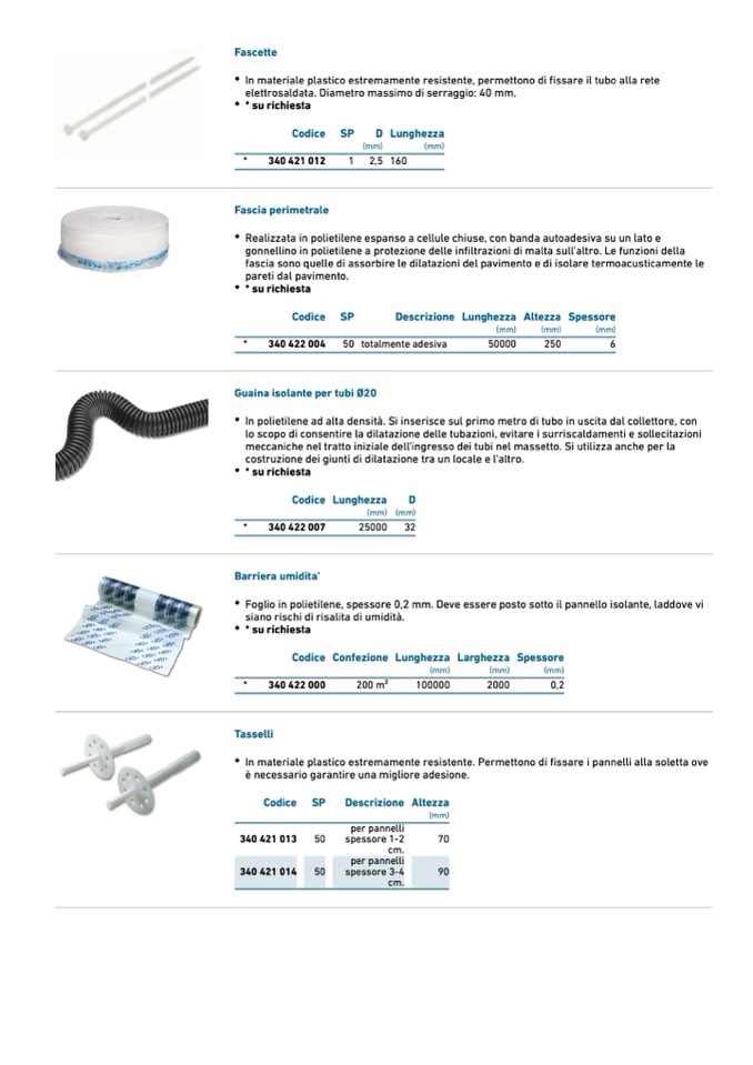 In materiale plastico estremamente resistente. Permettono di fissare i pannelli alla soletta ove