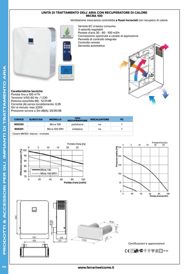 Ventilazione meccanica controllata a flussi incrociati con recupero di calore.
