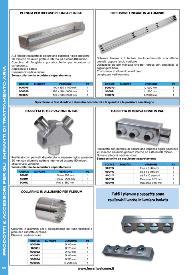 realizzabili anche in lamiera isolata