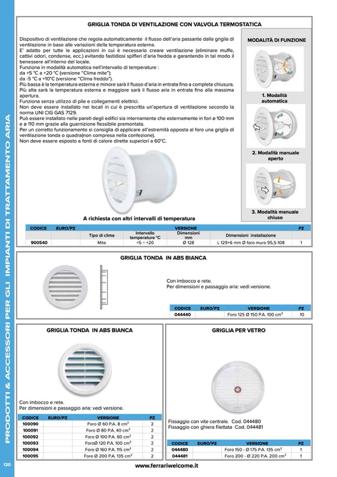 GRIGLIA TONDA DI VENTILAZIONE CON VALVOLA TERMOSTATICA