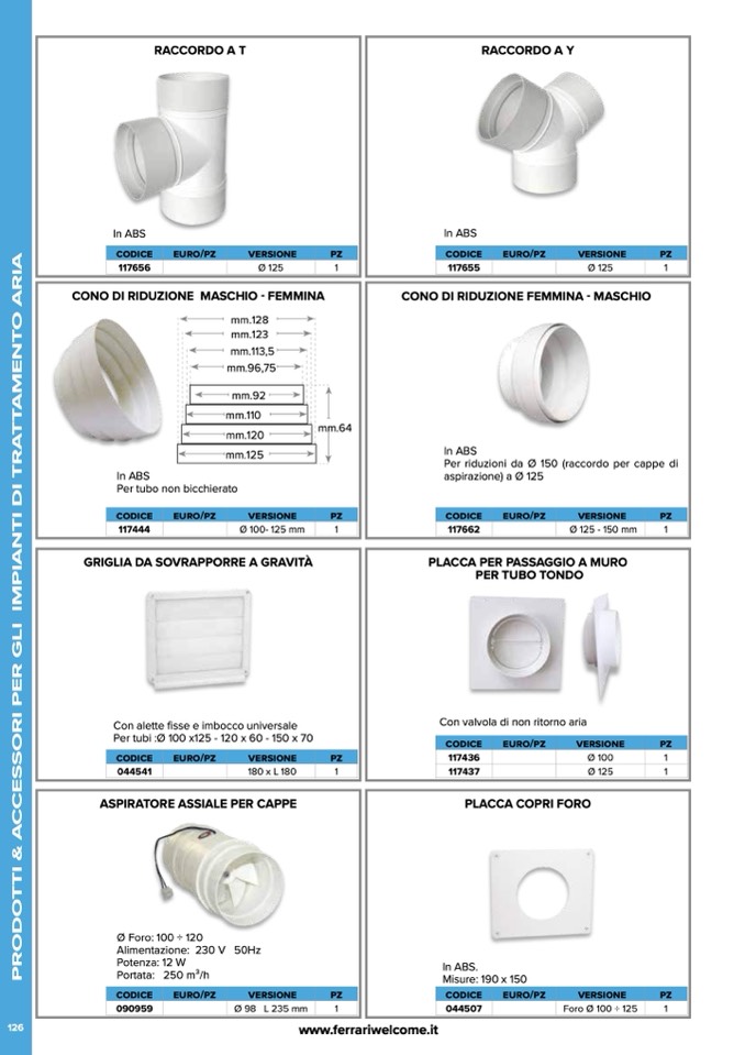 Per riduzioni da Ø 150 (raccordo per cappe di