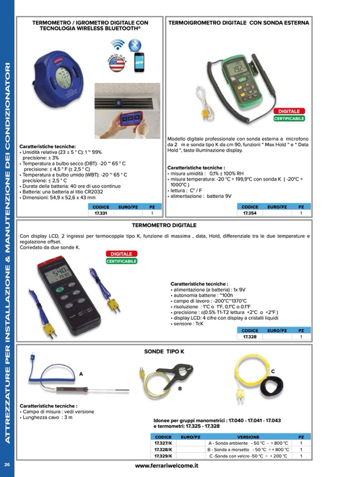 da 2 m e sonda tipo K da cm 90, funzioni “ Max Hold “ e “ Data