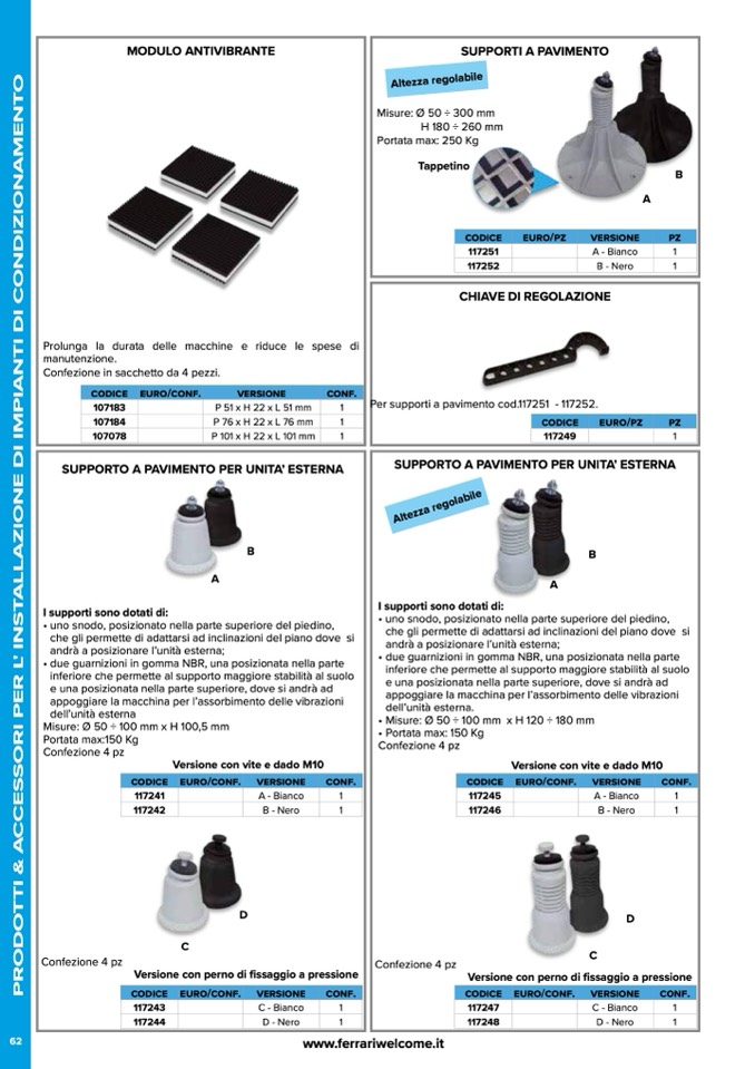 Per supporti a pavimento cod.117251 - 117252.