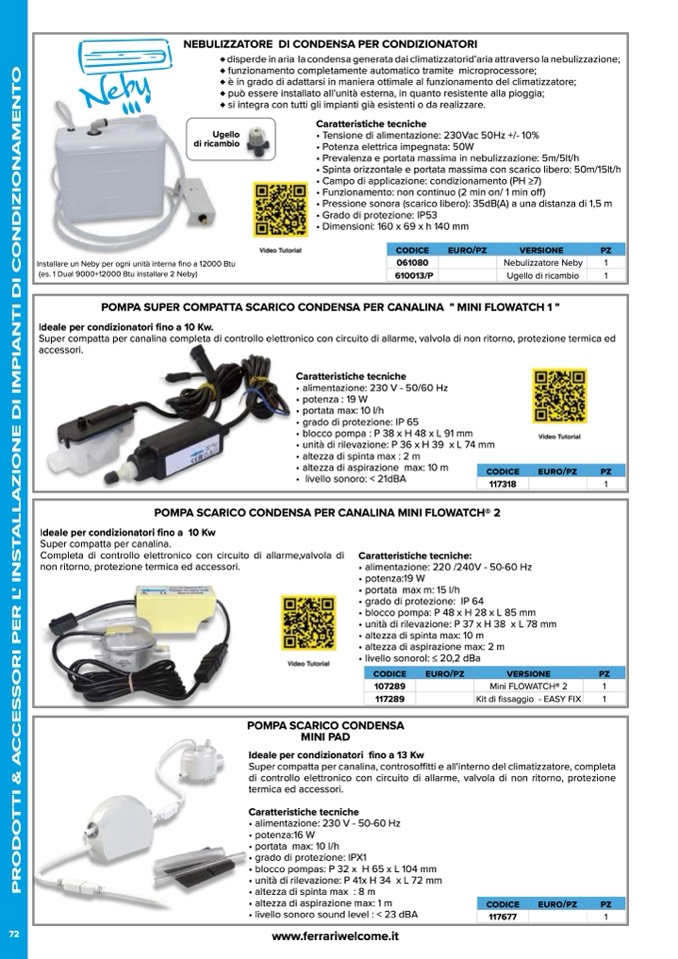 POMPA SUPER COMPATTA SCARICO CONDENSA PER CANALINA " MINI FLOWATCH 1 "