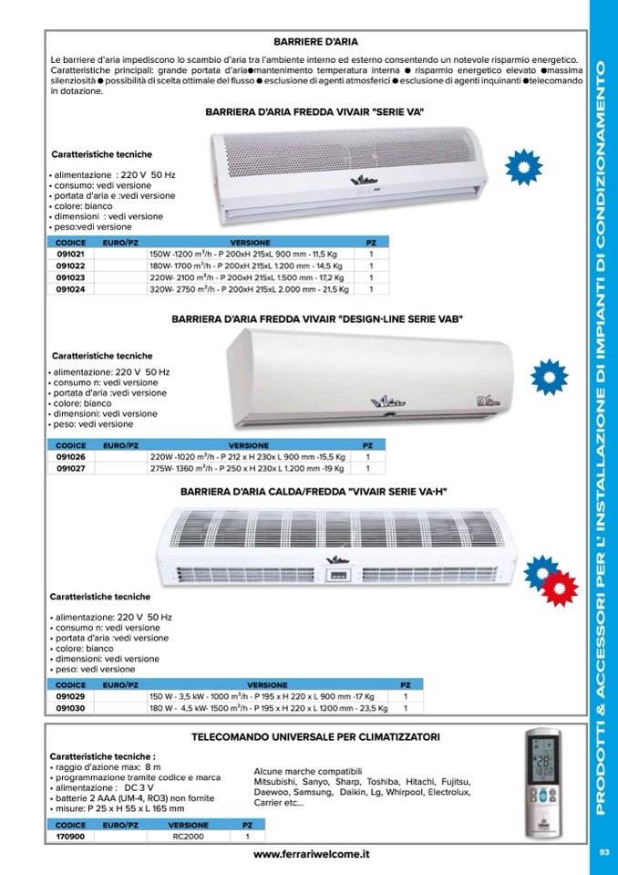 BARRIERA D’ARIA CALDA/FREDDA "VIVAIR SERIE VA-H"