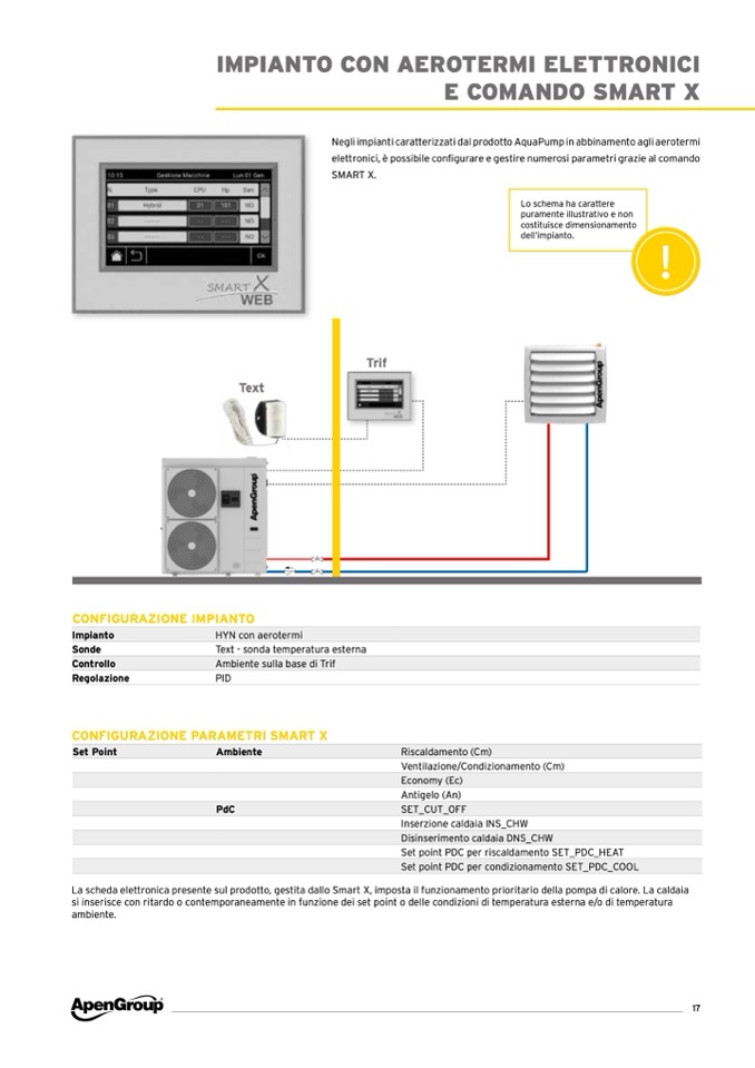 La scheda elettronica presente sul prodotto, gestita dallo Smart X, imposta il funzionamento prioritario della pompa di calore. La caldaia