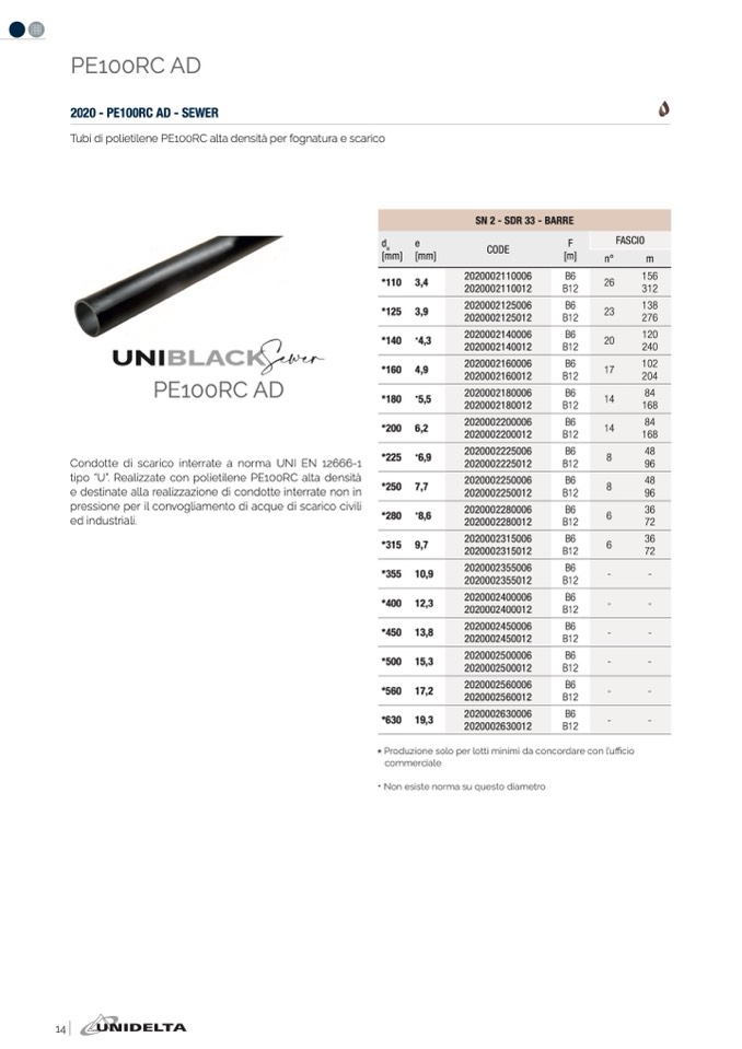 tipo “U”. Realizzate con polietilene PE100RC alta densit