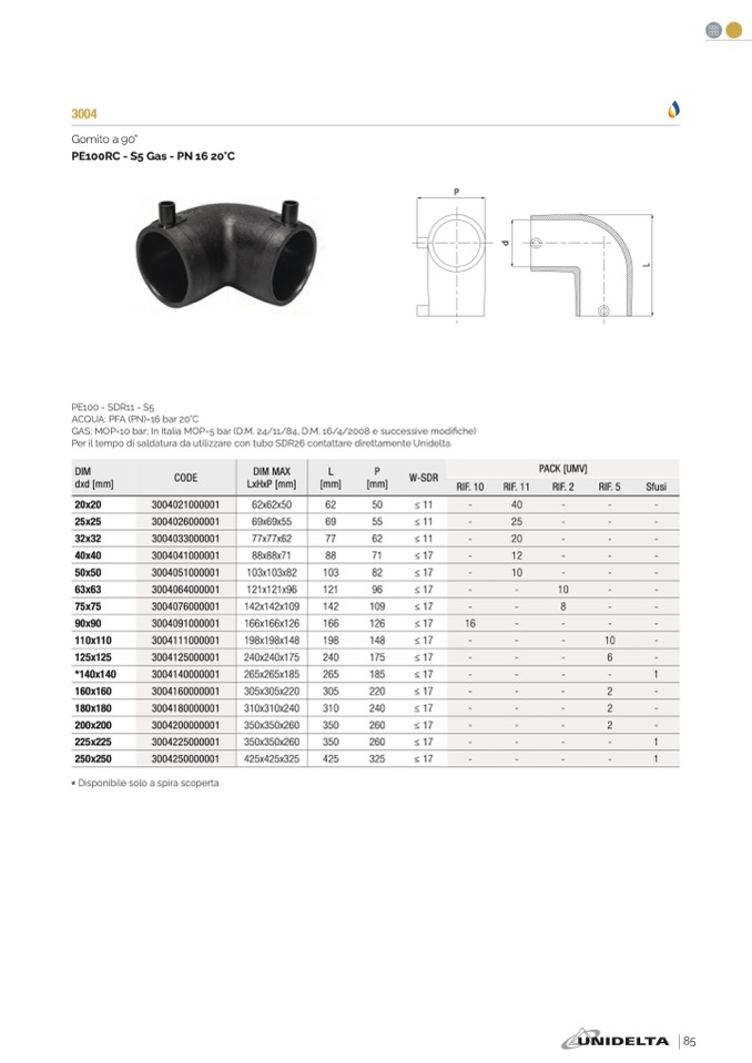 GAS: MOP=10 bar; In Italia MOP=5 bar (D.M. 24/11/84, D.M. 16/4/2008 e successive modi