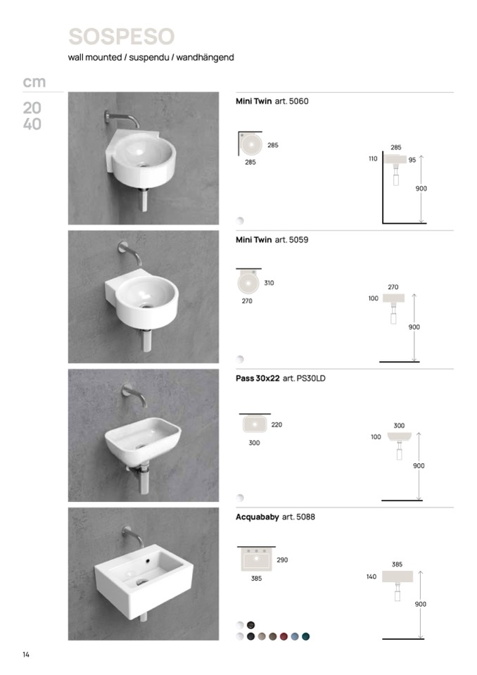 wall mounted / suspendu / wandhängend