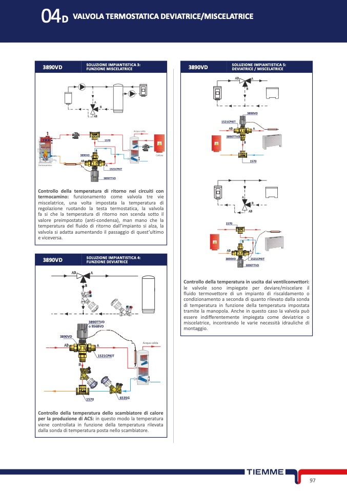le valvole sono impiegate per deviare/miscelare i