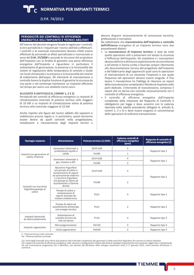 (1) I limiti degli intervalli sono riferiti alla potenza utile nominale complessiva dei generatori e delle macchine frigorifere che servono lo stesso impianto.