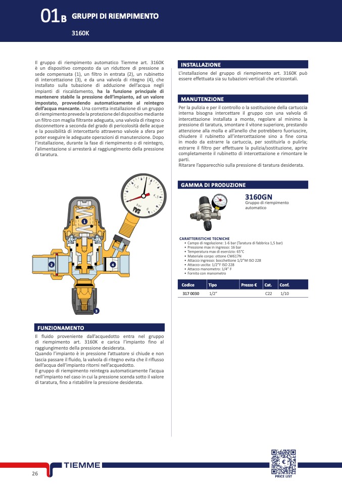 di riempimento art. 3160K e carica l’impianto fino al
