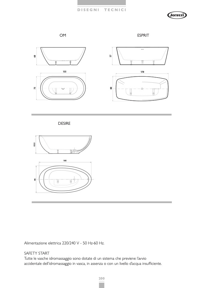 Alimentazione elettrica 220/240 V - 50 Hz-60 Hz.