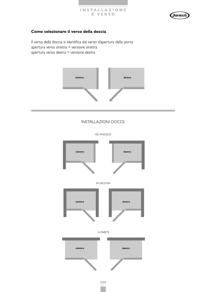 Il verso della doccia si identifica dal verso d’apertura della porta: