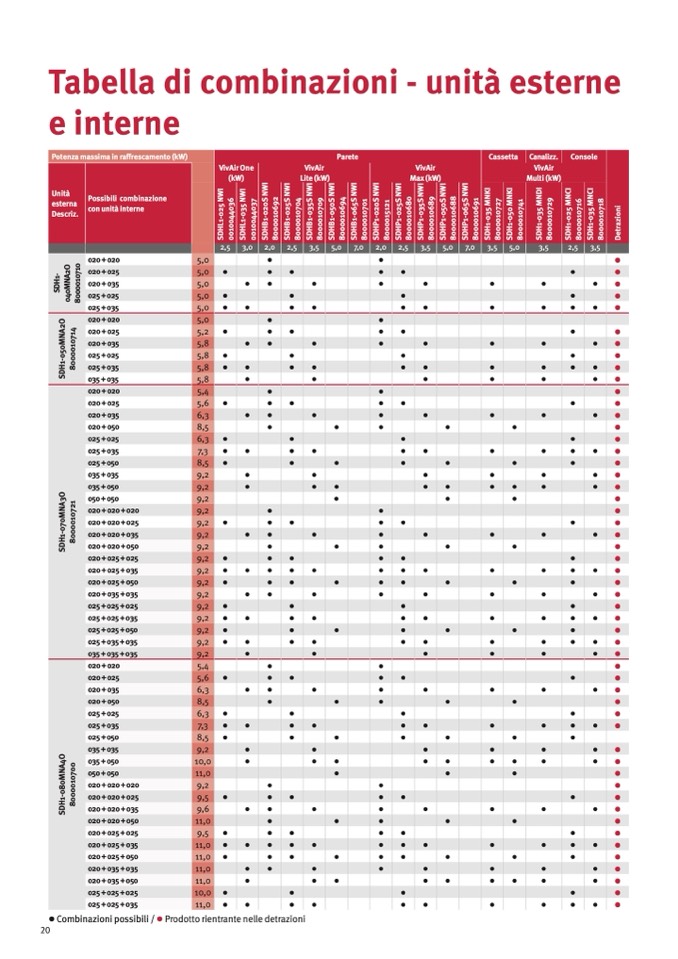 ● Combinazioni possibili / ● Prodotto rientrante nelle detrazion