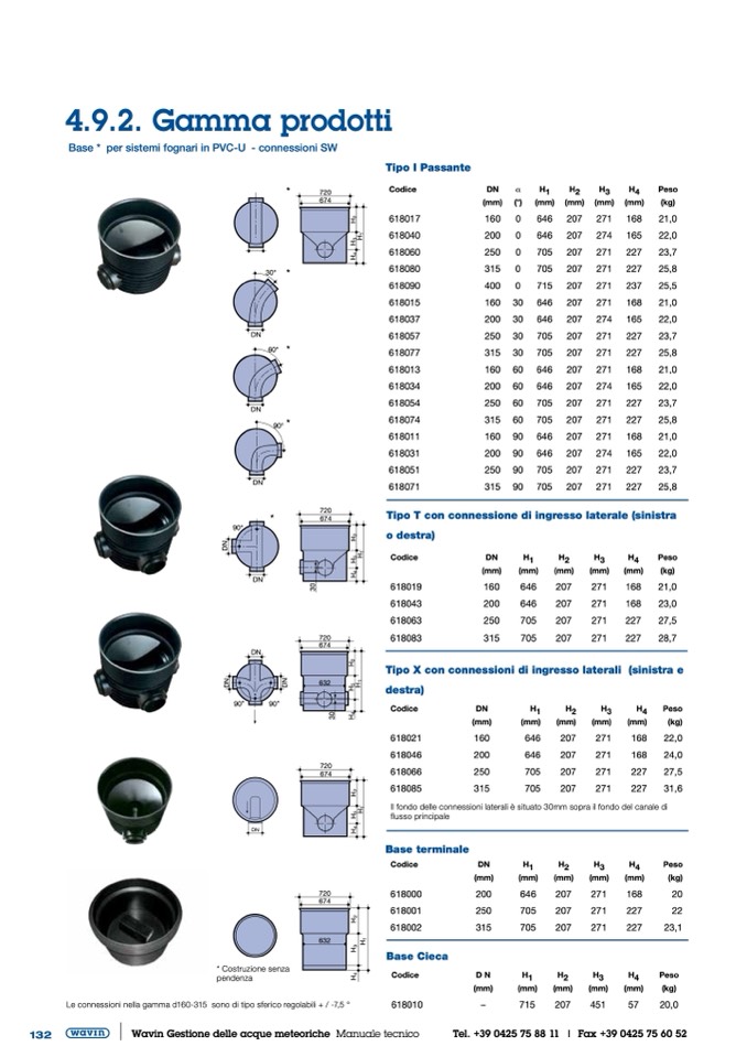 Base * per sistemi fognari in PVC-U - connessioni SW
