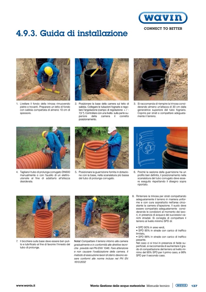 sabbia. Collegare le tubazioni fognarie e rego-