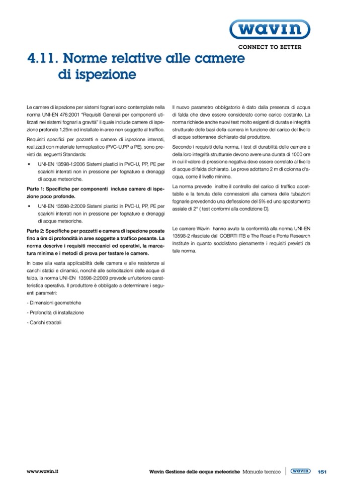 Requisiti specifici per pozzetti e camere di ispezione interrati,