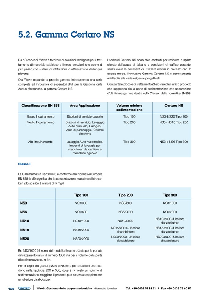 d’oli, l’intera gamma rientra nella Classe I della normativa EN858.