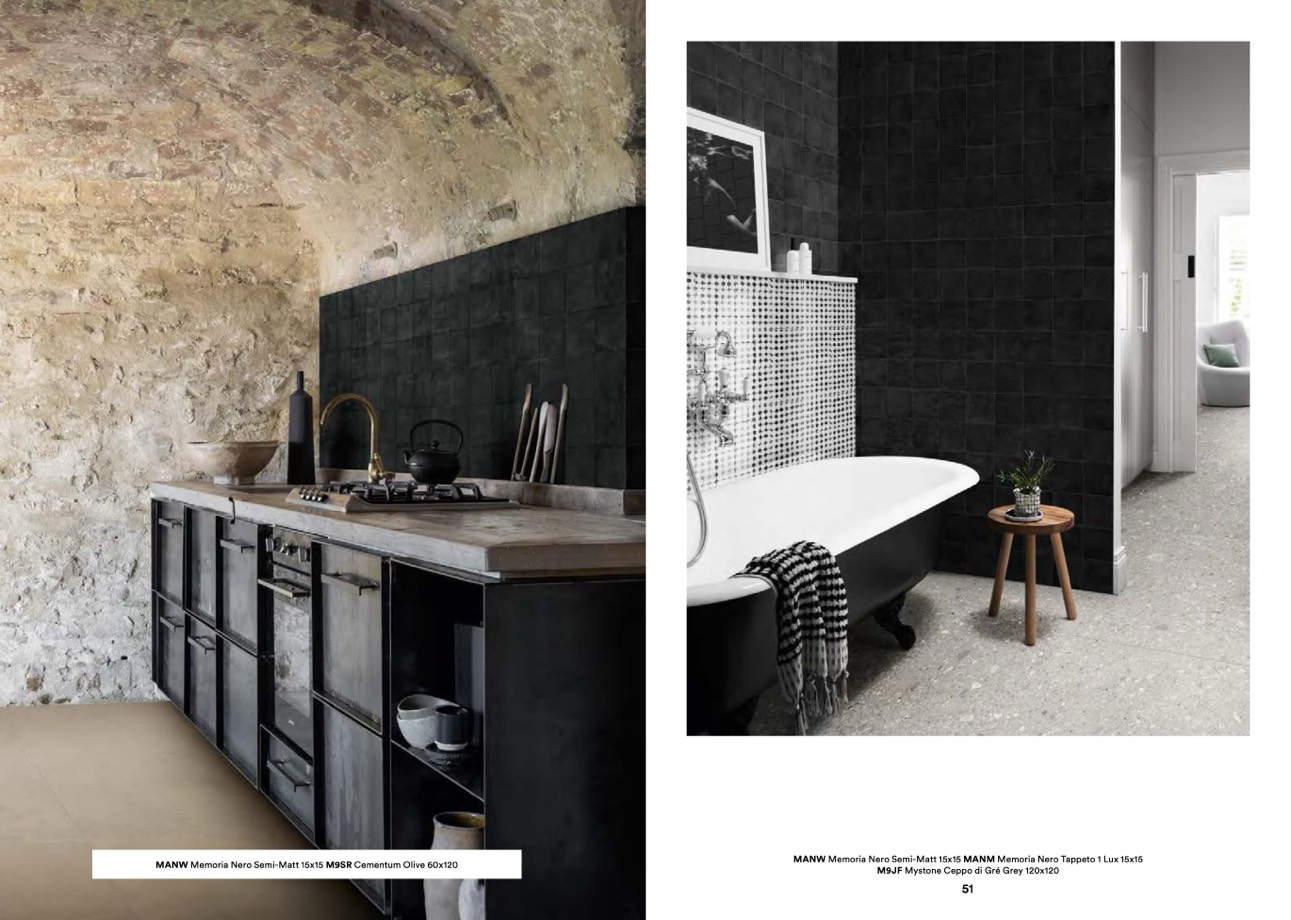 MANW Memoria Nero Semi-Matt 15x15 MANM Memoria Nero Tappeto 1 Lux 15x15
