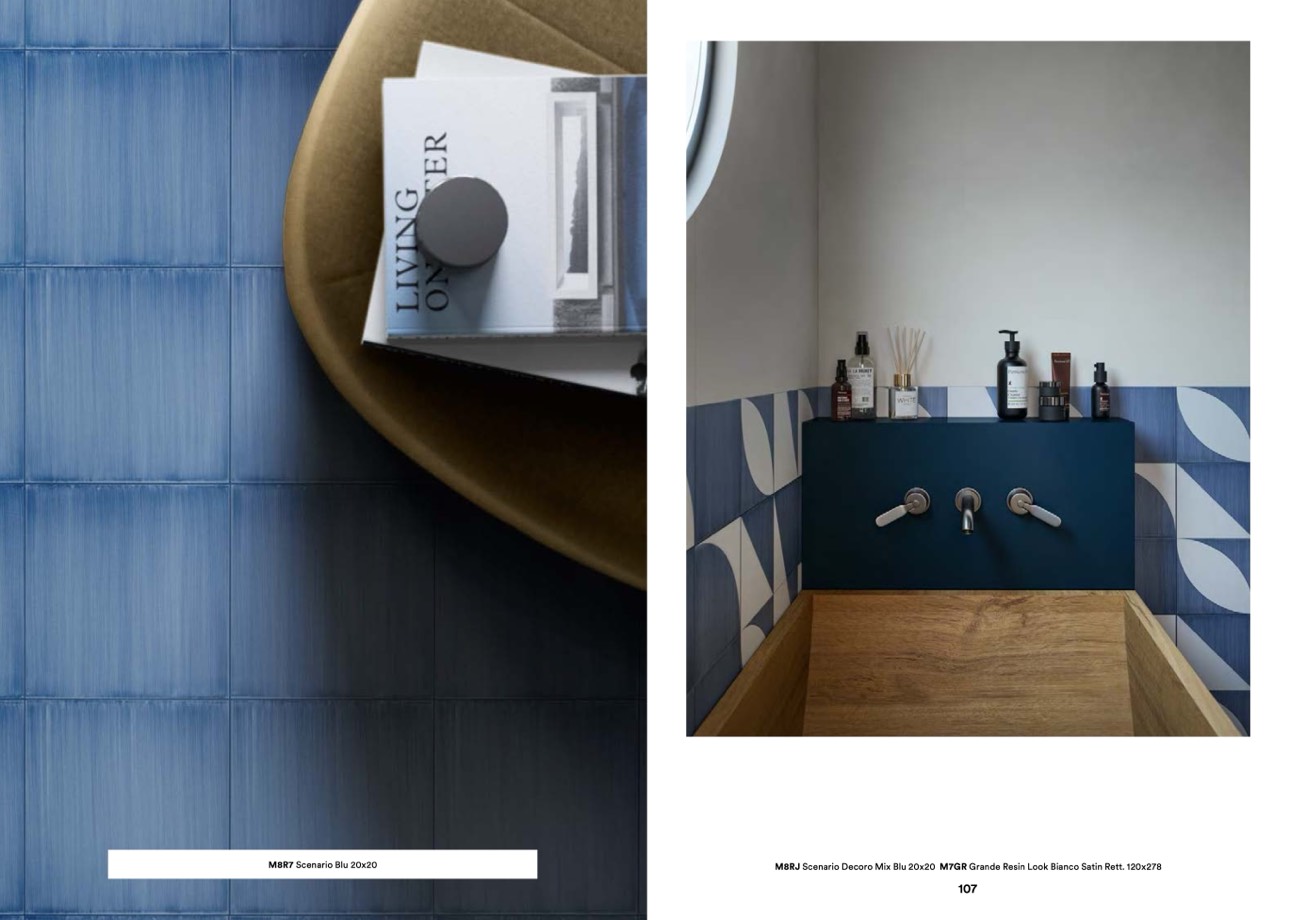 M8RJ Scenario Decoro Mix Blu 20x20 M7GR Grande Resin Look Bianco Satin Rett. 120x278