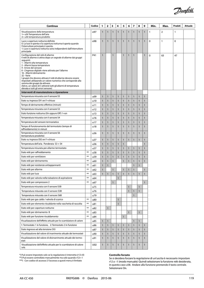 **) Può essere controllato manualmente ma solo quando r12=-1