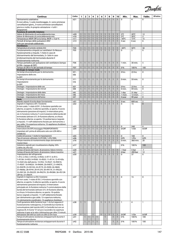 a impulsi). 11=raff reddamento forzato per sbrinamento a