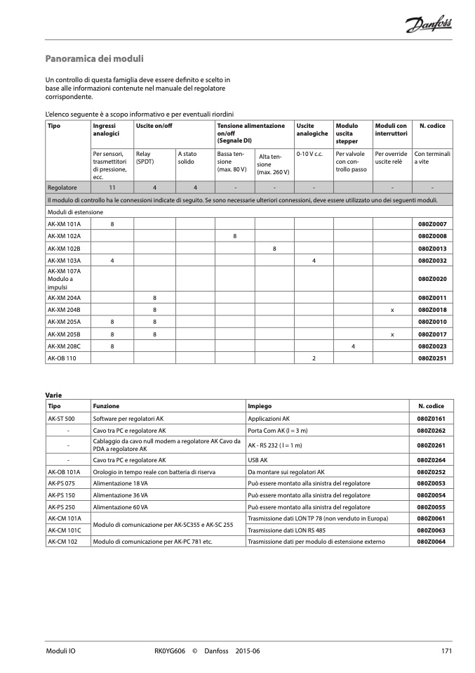 Il modulo di controllo ha le connessioni indicate di seguito. Se sono necessarie ulteriori connessioni, deve essere utilizzato uno dei seguenti moduli.
