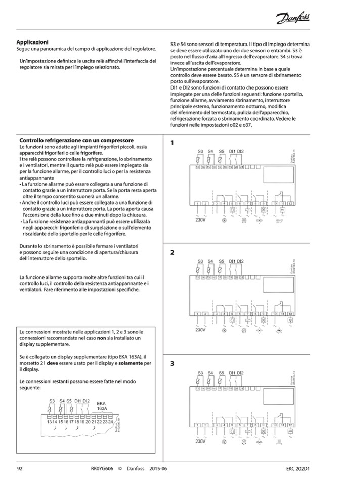 Le funzioni sono adatte agli impianti frigoriferi piccoli, ossia