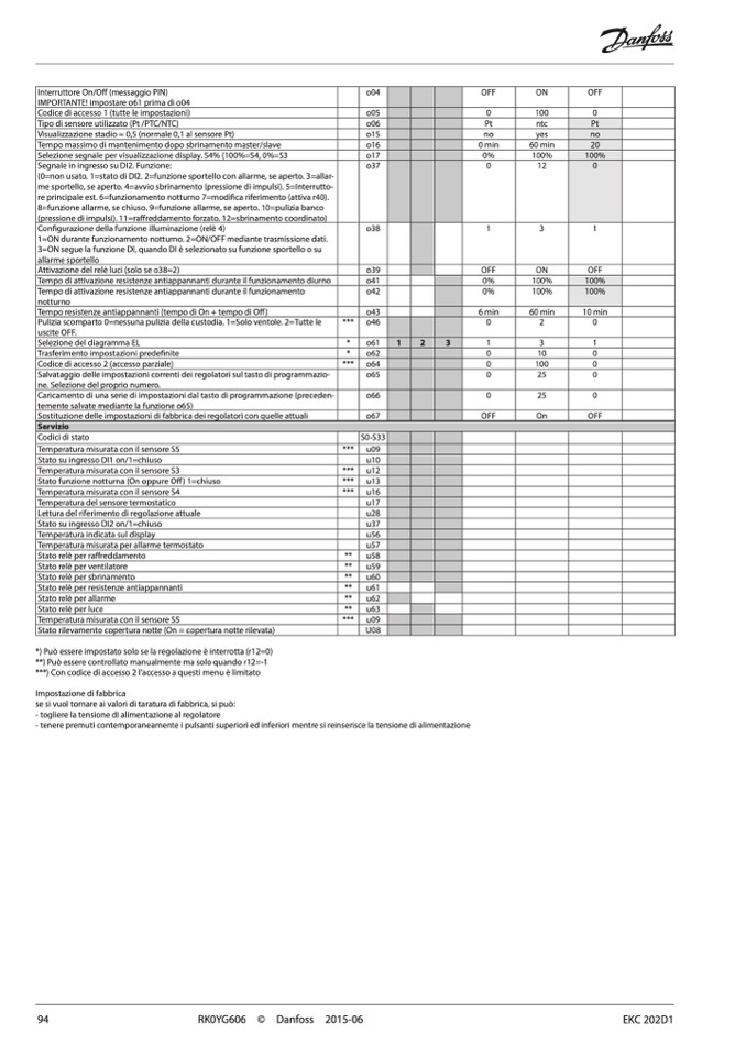 me sportello, se aperto. 4=avvio sbrinamento (pressione di impulsi). 5=Interrutto-