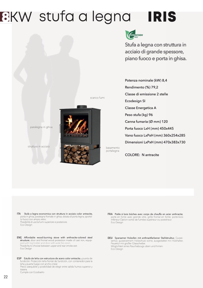 ITA Stufa a legna economica con struttura in acciaio color antracite,
