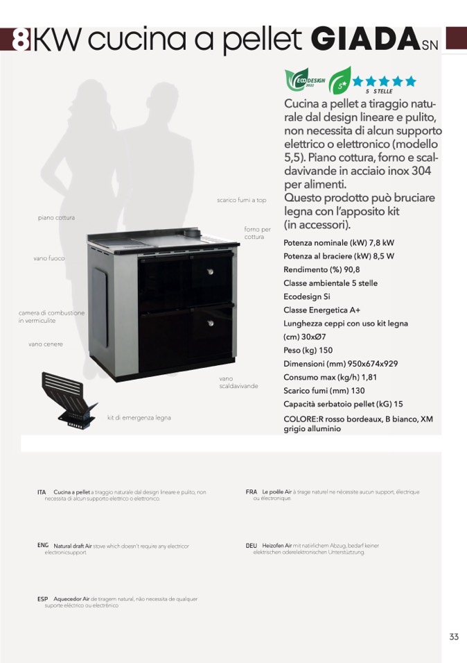 ITA Cucina a pellet a tiraggio naturale dal design lineare e pulito, non