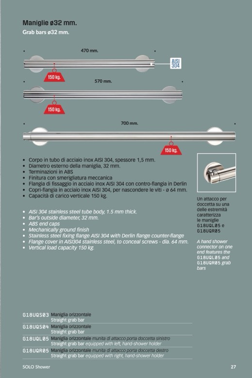 G18UQL05 Maniglia orizzontale munita di attacco porta doccetta sinistro