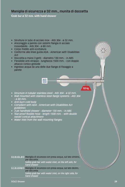 G18UGL03 Maniglia di sicurezza con presa acqua, sul lato sinistro,