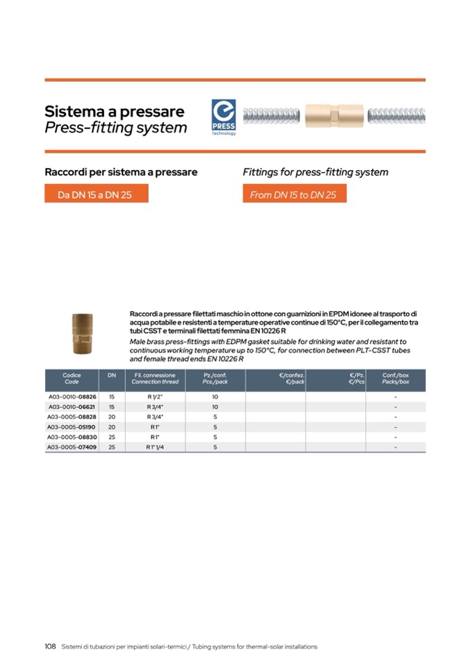 Sistemi di tubazioni per impianti solari-termici / Tubing systems for thermal-solar installations
