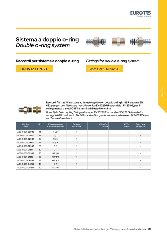 o-rings in NBR conform to EN 682 standard for gas for connection between PLT-CSST tubes