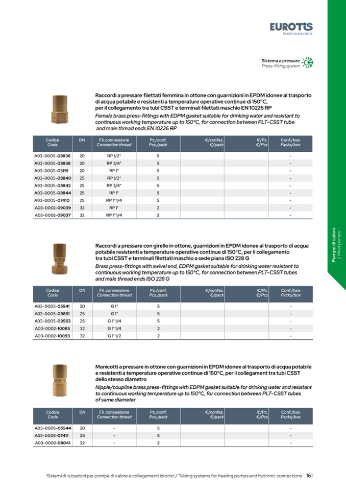 Sistemi di tubazioni per pompe di calore e collegamenti idronici / Tubing systems for heating pumps and hydronic connections