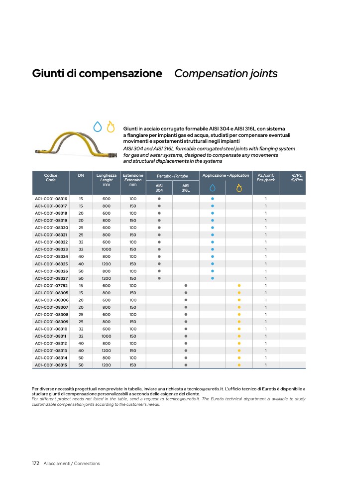 For different project needs not listed in the table, send a request to tecnico@eurotis.it. The Eurotis technical department is available to study