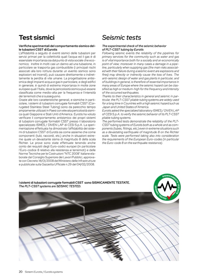 I sistemi di tubazioni corrugate formabili CSST sono SISMICAMENTE TESTATE.