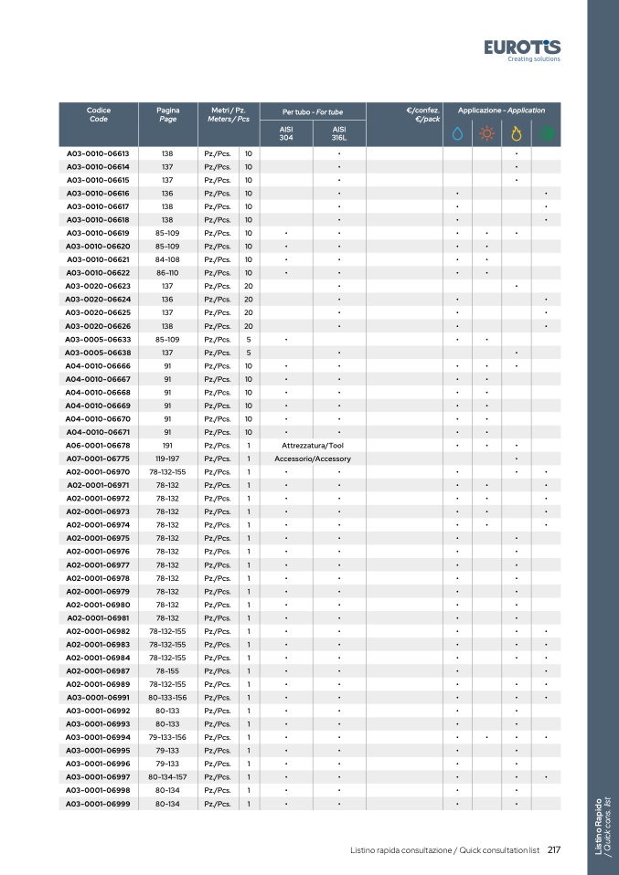 Listino rapida consultazione / Quick consultation list