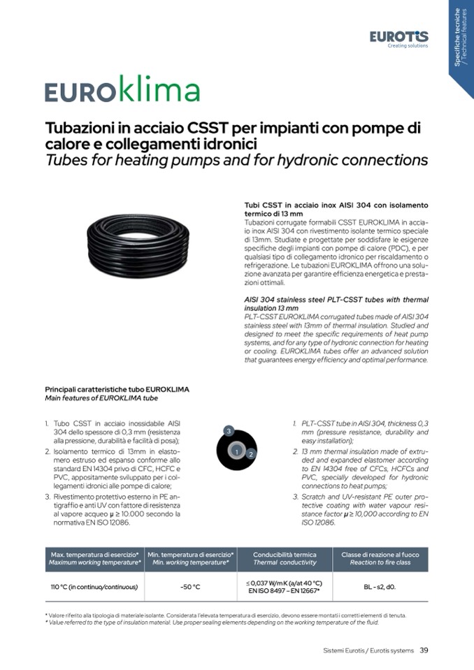 Main features of EUROKLIMA tube