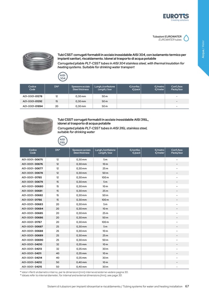 EUROWATER tubes